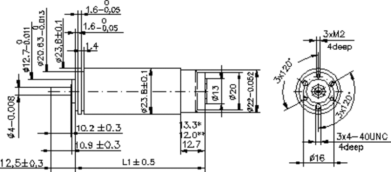 Ratio | Nominal | Pulsed | Efficiency | Weight | Length L1 with |